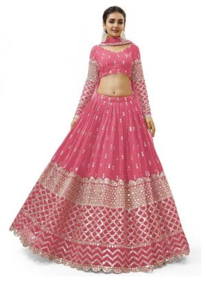 Embroidered Georgette Fabric Lehenga Choli with Du...