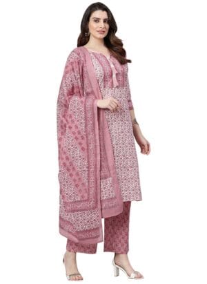 Cotton Printed Straight Kurti with Palazzos and Du...