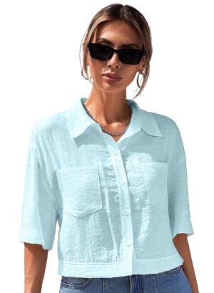 Standard Generic TOPLOT V-Collar Solid Crop Shirt ...