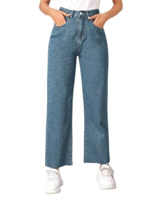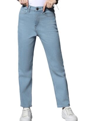 Girls Solid High Waist Denim Stretchable Relaxed F...