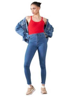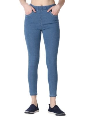 Skinny Fit Stretchable High Waist Ankle Length Jeg...