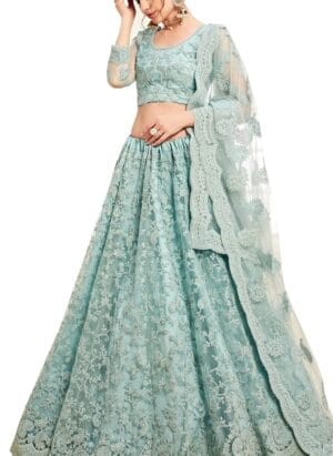 Net Embroidered Semi Stiched Lehenga Choli(PL410_P...