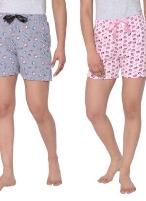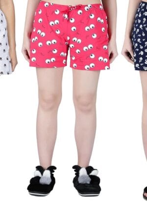 Womens Regular Fit Cotton Printed Shorts Combo (Pa...