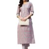 GoSriKi Women’s Cotton Blend Straight Printed Kurta with Palazzo (Lochna Grey_3XL-GO_ Grey_XXX-Large)
