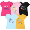 Delightful collection of five premium t-shirts. Crafted from soft and breathable cotton fabric, these t-shirts provide exceptional comfort and ensure that your little one feels cozy and at ease all day long. Each t-shirt in the combo pack boasts a charming and vibrant print on the front, adding a touch of style and fun to your child’s wardrobe. With a range of colors and prints included, your child can mix and match to create various stylish combinations according to their preferences and mood. The t-shirts are crafted to ensuring durability and long-lasting use.
