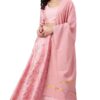Janasya is here to serve you this pink lehenga choli set. It features a beautiful blouse with round neck, 3/4 sleeves with gold foil print on it. The lenhenga is printed with floral twinnings in color & gold, has kali panels and tassels at the hem of tie-ups; It comes with a beautiful solid woven dupatta which enhances the whole look. Team it up with festive jewelry to get in a bright festive mood.
