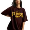 Standard Generic LEOTUDE Women’s Oversized Cottonblend Half Sleeve Drop Shoulder Printed Tshirt (Color Brown)