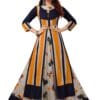 Fabric: RayonColor: Yellow, Navy BluePrint: floral printStyle: AnarkaliSleeves: Three-Quarterlength: Ankle length