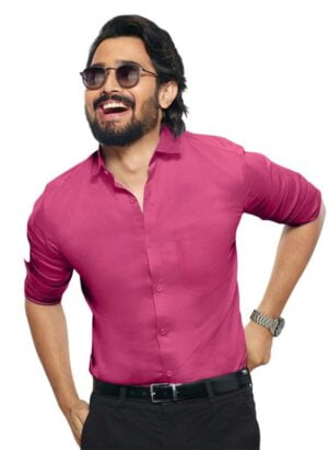 Men’s Solid Slim Fit Cotton Formal Shirt wit...
