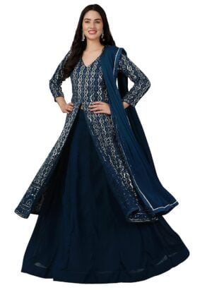 Georgette Embroidery Anarklai Suit Set Kurta Lehen...